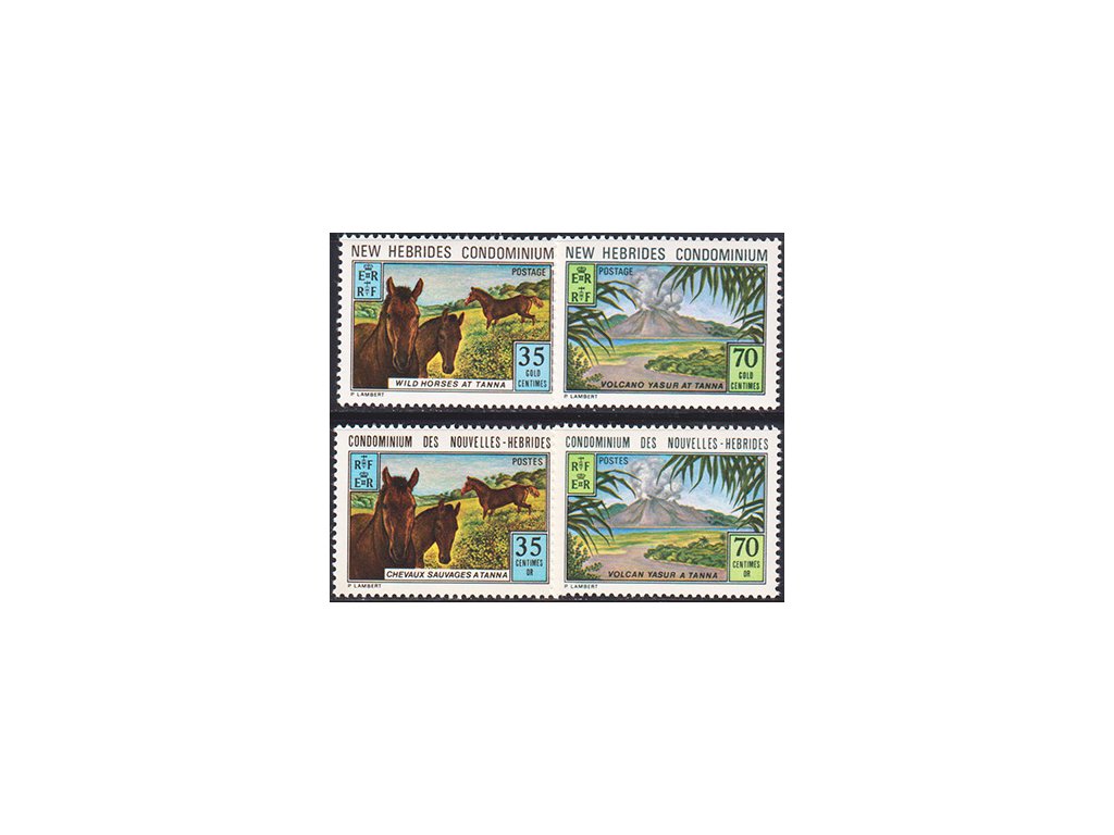 New Hebrides 1973 / 0367-368 + 369-370 / anglické + francúzske vydanie / Ostrov Tana - kone **